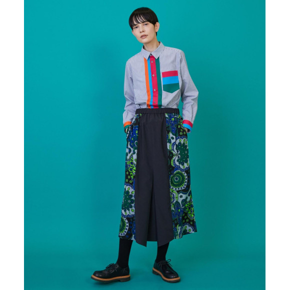 [การออกแบบ] กระโปรงของการออกแบบที่ดูเหมือนจะติดผ้าพันคอในด้านข้าง รวม pleats ตู้เข้าไว้ในความเป็นมาด้านหน้า และแสดงความลึกที่มี three-dimensional impression